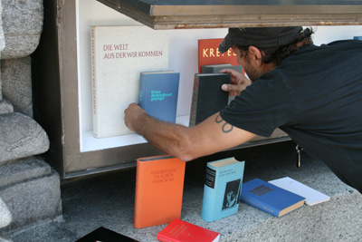 Costa Vece beim Einrichten seiner Ausstellung.