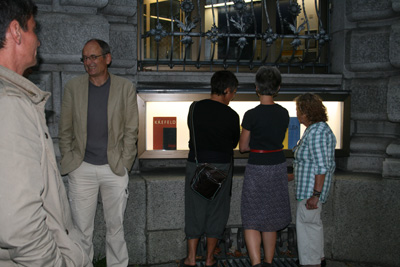 Zahlreiche Gäste vor dem Schaukasten.
